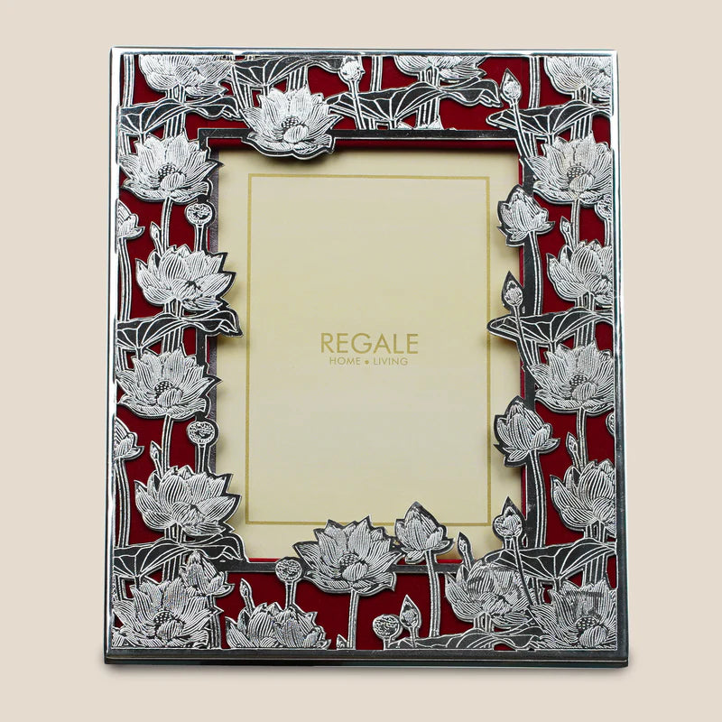 Silver-Plated Lotus Bloom Photo Frame Maroon