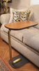 The Zenith C-Table features a rich walnut-brown top, supported by a sleek gold-toned metal frame and a sturdy matte black base. Its modern, space-saving design slides easily beside sofas or chairs, adding both style and convenience to any living space. It comes in a knock-down structure for convenient shipping and can be assembled effortlessly.